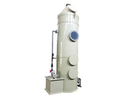 酸霧吸收塔采用PP板材卷筒成型后焊接而成,本體設計有循環水箱、廢氣入口、填料層、格柵、噴淋層、除霧層、廢氣出口以及填料裝卸口、觀察視窗、水箱清潔人孔等組成。